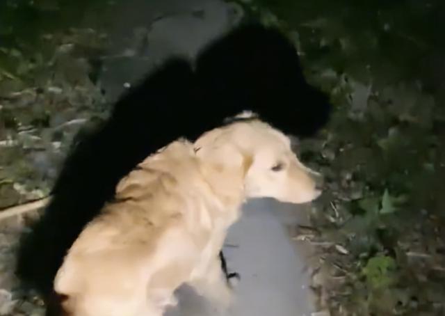 Hoá ra đó chú chó cưng, lo cho chủ nên mang theo cả đèn pin đi đón