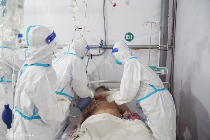 Những F0 phải thở máy, thở oxy, nằm pḥng hồi sức tích cực (ICU) có nguy cơ cao mắc các di chứng sau khi khỏi bệnh. Trong ảnh, nhân viên y tế đang chăm sóc một bệnh nhân mắc Covid-19 nặng tại Bệnh viện dă chiến đa tầng Tân B́nh, ngày 31/12/2021. Ảnh:Thư Anh