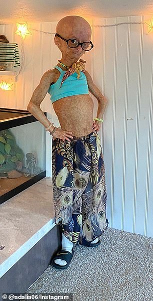 Cũng vào khoảng thời gian này, Adalia bắt đầu rụng tóc, các mạch máu nhỏ xuất hiện nhiều hơn, da cô bé cũng mỏng đi nhiều. Những người mắc phải căn bệnh này c̣n có nguy cơ gia tăng bệnh lùn do có một gen protein bất thường.