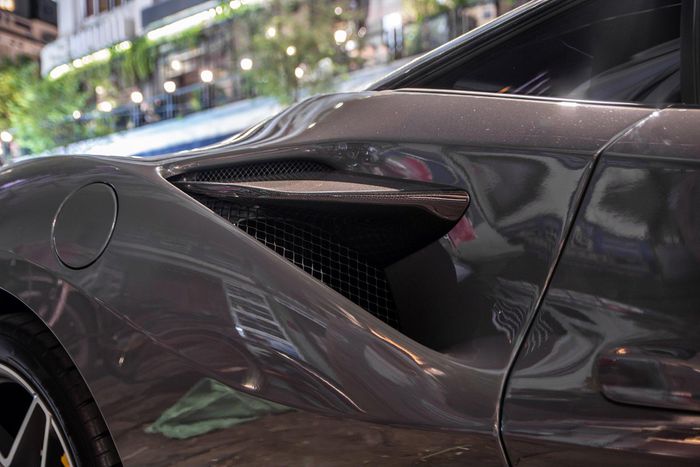 Xe sở hữu màu sơn xám Grigio Scuro ở ngoại thất. Màu sơn này không những khác biệt so với 4 chiếc F8 Tributo còn lại mà còn so với những chiếc Ferrari khác đã cập bến Việt Nam.