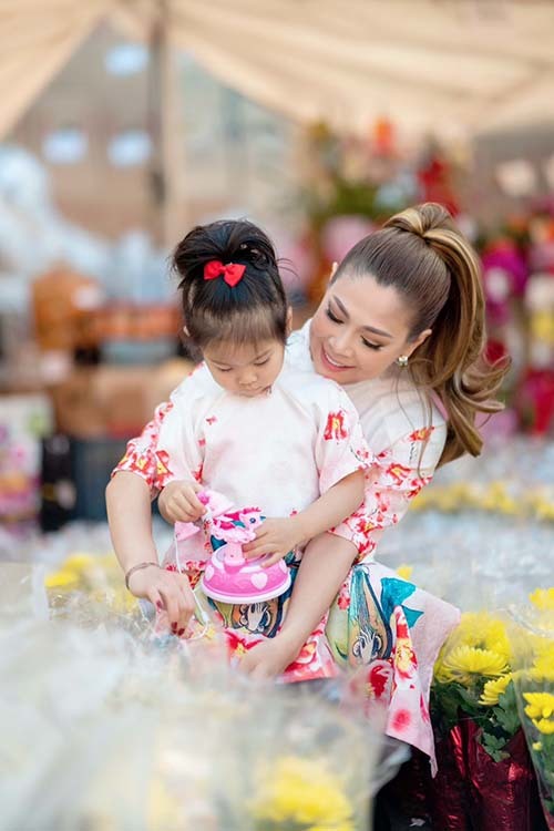 Trước đó, cô đưa các con đi chợ Tết ở thương xá Phước Lộc Thọ tại phố Bolsa thuộc Orange County. Theo cô, đây là địa điểm thu hút kiều bào đến sắm Tết, du xuân, chụp ảnh mừng năm mới.