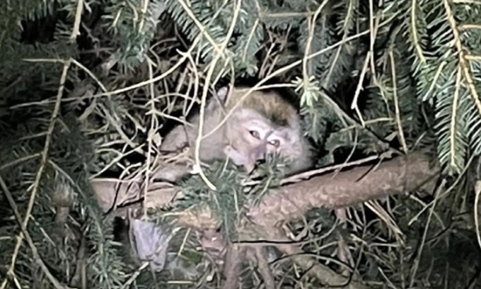 Một con khỉ bỏ trốn trèo trên cây gần khu Danville, bang Pennsylvania. Ảnh: AFP.