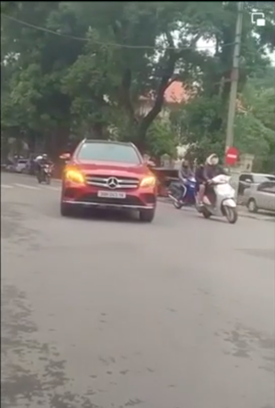 Thời điểm này, có nhiều phương tiện lưu thông trên đường, chiếc xe sang Mercedes đã dừng giữa đường và bật cảnh báo khẩn cấp.