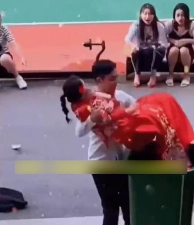 Đỉnh điểm, chú rể đã bế cô dâu lên rồi ném thẳng cô vào chiếc thùng rác ở gần đó, sau đó lạnh lùng bỏ đi. Chứng kiến cảnh này, một số người bạn đã chạy tới giải cứu cô dâu, đưa cô ra ngoài. Cô gái sau đó cũng chạy vội theo sau chồng như muốn tiếp tục tranh cãi, thậm chí còn nhắc đến chuyện ly hôn.