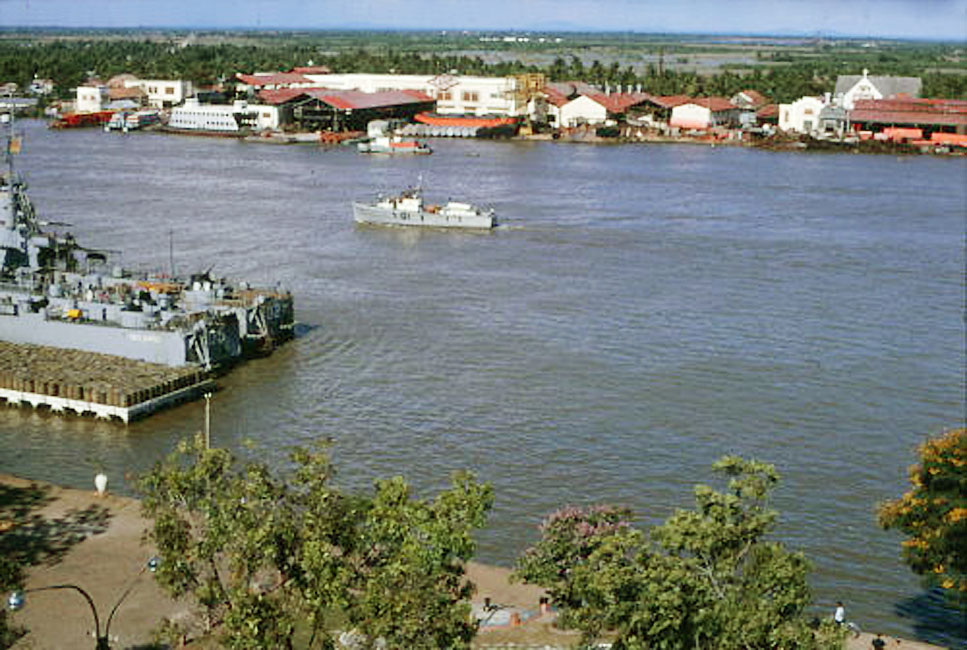 Tàu quân sự đang neo đậu ở cảng Sài Gòn trên sông Sài Gòn.
