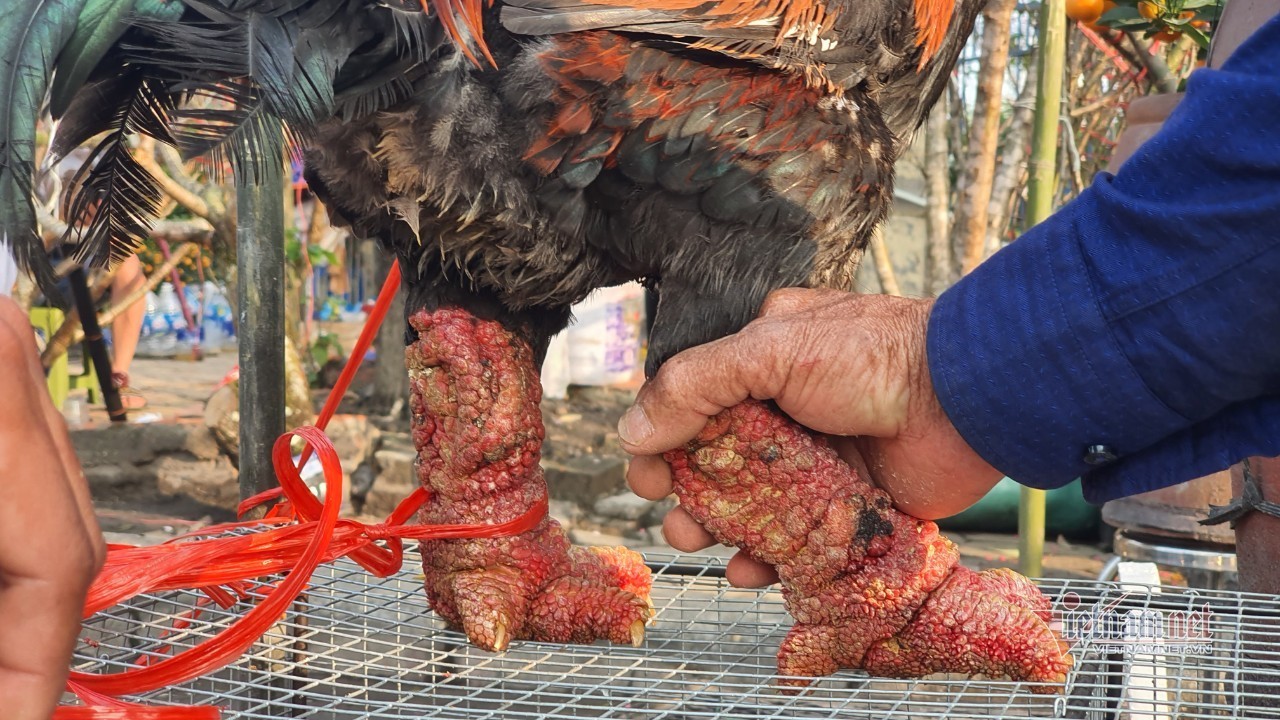 Điểm gây chú ư nhất đối với khách đi chợ Xuân đó là đôi chân khổng lồ của chú gà trưởng thành.