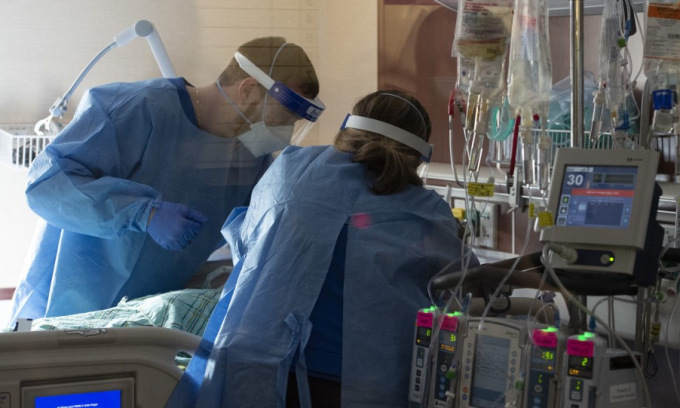 Bác sĩ điều trị cho bệnh nhân tại bang Connecticut, Mỹ, hôm 18/1. Ảnh: AFP.