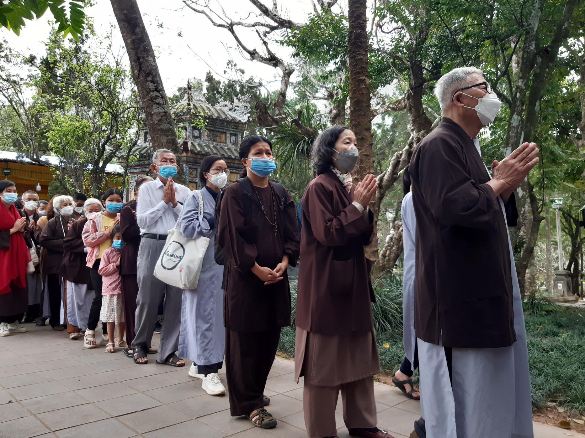 Rất đông Phật tử dự lễ cung thỉnh xá lợi và giác linh an vị Thiền sư Thích Nhất Hạnh tại Tổ đ́nh Từ Hiếu. Ảnh: CTV.