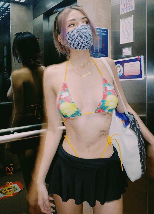 Hình ảnh một người đẹp diện bikini trong thang máy được nhiều người chia sẻ trên mạng xã hội.