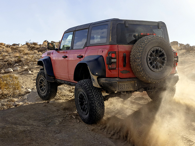 Không chỉ đơn thuần sở hữu một vẻ ngoài hầm hố hơn để phân biệt dễ dàng với Bronco thông thường, Bronco Raptor còn đi kèm một loạt các nâng cấp về hiệu suất và khả năng vận hành bên dưới vẻ ngoài cơ bắp. Được lấy cảm hứng từ Ultra-4 Racing, giải đua offroad một ngày khắc nghiệt nhất hành tinh hiện tại, Bronco Raptor sở hữu khả năng vượt địa hình đáng kinh ngạc với khả năng xử lý tốt trên cả đường cát, bùn, sỏi đá cả đường trường.