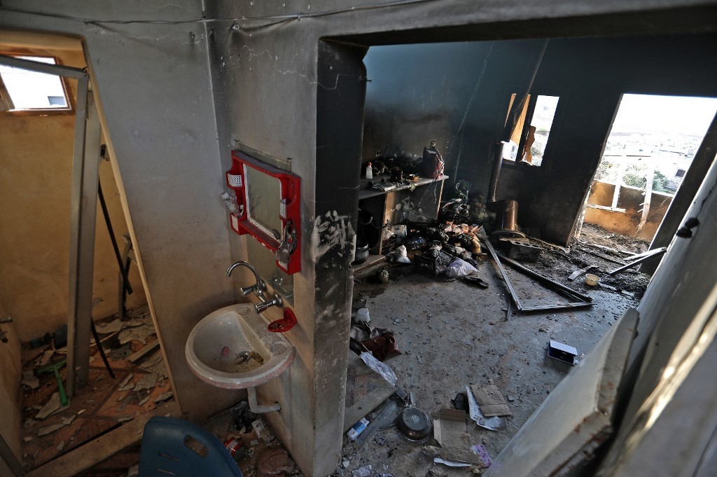 Căn pḥng bị hư hại sau vụ đánh bom.