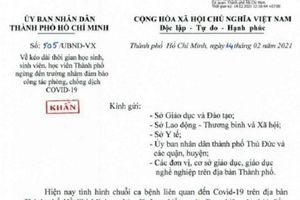 Mạng xã hội đang lan truyền văn bản chỉ đạo của UBND TP.HCM kéo dài thời gian học sinh, sinh viên, học viên trên địa bàn thành phố ngừng đến trường đến 28/2 để đảm bảo công tác phòng, chống dịch COVID-19.