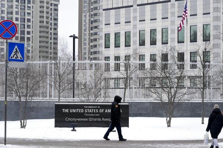 Quyết định sơ tán hoàn toàn đại sứ quán ở Kiev được đưa ra sau khi Bộ Ngoại giao Mỹ yêu cầu phần lớn nhân viên của đại sứ quán rời khỏi Ukraine do lo ngại "hành động quân sự từ Nga". Các công dân Mỹ cũng được khuyến cáo nhanh chóng rời khỏi Ukraine bằng các phương tiện công cộng hoặc cá nhân.