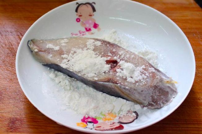Một cách khác để món cá được thơm ngon, không bị dính chảo là tẩm bột vào cá. Sau khi xơ chế, bạn đem cá lăn vào đĩa tinh bột để tinh bột bám khắp các mặt của con cá. Cho một lượng dầu ăn phù hợp vào chảo, đun nóng đến khoảng 70 độ thi rắc một ít tinh bột vào chảo, lắc chảo qua lại khoảng vài lần để tinh bột hòa quyện vào dầu ăn. Sau đó, thả cá vào chảo rán vàng đều hai mặt. Với cách này, cá sẽ vàng giòn mà không bị dính chảo. Bạn có thể sử dụng các loại tinh bột có sẵn trong nhà như tinh bột bắp, tinh bột khoai... Nếu không có, có thể sử dụng bột mì, bột chiên giòn để thay thế.