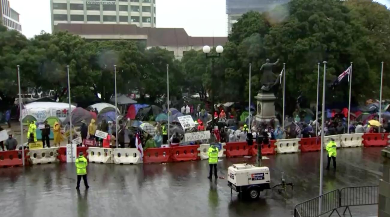 Hãng tin Reuters cho biết hàng trăm người biểu tình tiếp tục chiếm các bãi cỏ trước nghị viện “Beehive” trong ngày thứ bảy, phớt lờ việc cảnh sát kêu gọi rời đi dù có trận mưa lớn vào cuối tuần qua. Lấy cảm hứng từ các cuộc biểu tình chống vaccine của những tài xế xe vận tải ở Canada, những người biểu tình cũng đang chặn một số tuyến đường xung quanh nghị viện bằng xe vận tải, xe van và xe máy.
