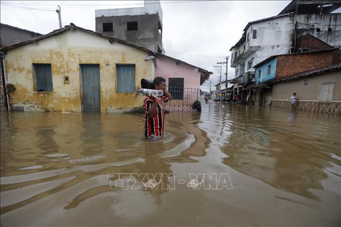 Cảnh ngập lụt do mưa lớn tại thành phố Dario Meira, bang Bahia, Brazil ngày 28/12/2021. Ảnh tư liệu: THX/TTXVN