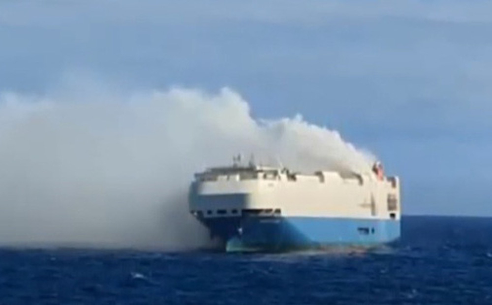 Một tàu hàng khổng lồ chở theo hàng ngàn xe hơi đã bốc cháy và đang trôi dạt ở ngoài khơi quần đảo Azores - Bồ Đào Nha hôm 17-2 sau khi 22 thành viên thủy thủ đoàn được cứu khỏi con tàu.