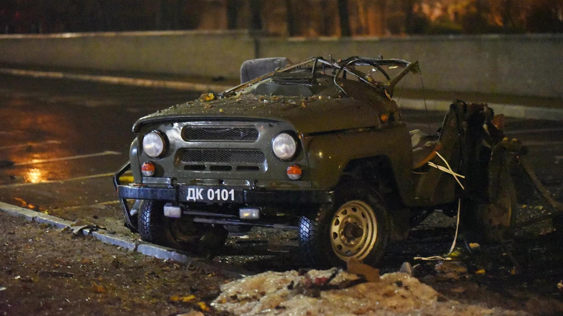 Hiện trường vụ đánh bom xe ở Donnetsk. Ảnh Sputnik