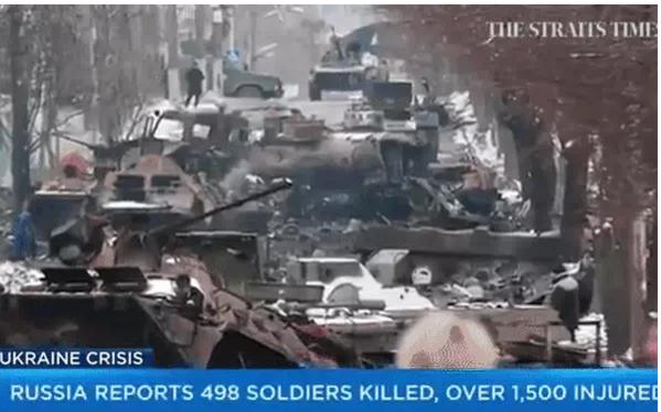 Bộ Quốc phòng Nga đã công bố 1 video ghi lại hình ảnh chiến địa sau trận giao tranh ở gần thành phố Mariupol. Trong video có thể thấy một phần còn lại của chiếc xe tăng đã bị phá hủy, có thể là phiên bản T-72AV/B1, sơn các màu của quốc kỳ Ukraine trên pháo chính.