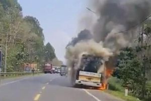 Xe khách chở 19 người đi đám cưới bốc cháy trên quốc lộ