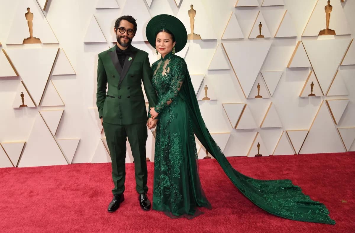 Kelly Marie Tran (R) and Director Carlos López Estrada on the Oscars 2022 red carpet on March 27, 2022. Photo courtesy of Thai Nguyen's Facebook