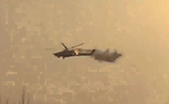 Căn cứ hình ảnh được đăng tải, phần đuôi đã rơi khỏi thân trực thăng sau khi tên lửa trúng đích.
