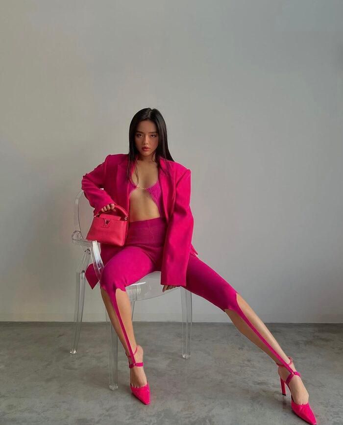 Cô em Trendy là fan cứng của ‘hot pink’, không thể đếm được Khánh Linh đã diện hồng bao nhiêu lần nữa.