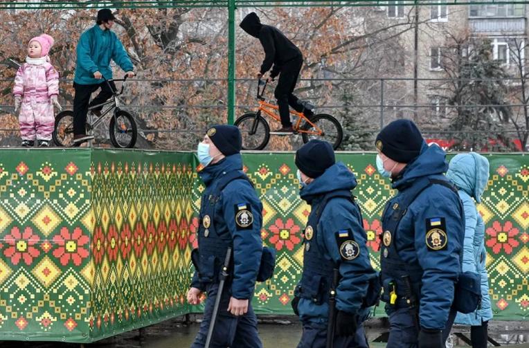 Lực lượng cảnh vệ tuần tra tại thành phố Soviansk, Ukraine hồi đầu tháng 2 (Ảnh: AP).