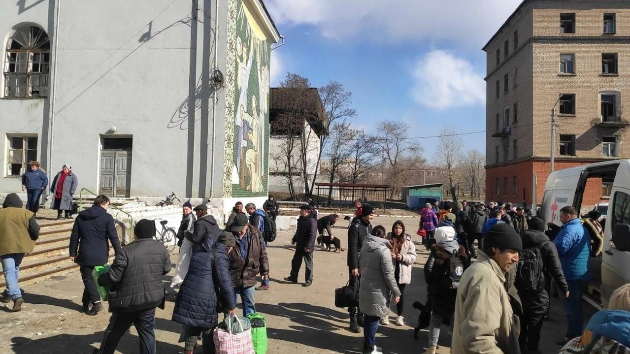 Người dân sơ tán để tránh cuộc tấn công của quân Nga, Rubizhne thuộc vùng Lugansk, miền đông Ukraina, ngày 23/03/2022. via REUTERS - LUHANSK REGIONAL STATE ADMINISTR