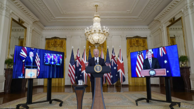 Cuộc khủng hoảng Ukraina, nhiệm vụ đảm bảo an ninh và ổn định ở khu vực châu Á - Thái B́nh Dương chỉ là cái cớ để Mỹ, Anh và Australia thiết lập sự hợp tác trong việc phát triển các công nghệ quân sự tiên tiến như vũ khí siêu thanh. Phát ngôn viên Bộ Ngoại giao Trung Quốc Triệu Lập Kiên (Zhao Lijian) đã tuyên bố như vậy hôm thứ Tư.