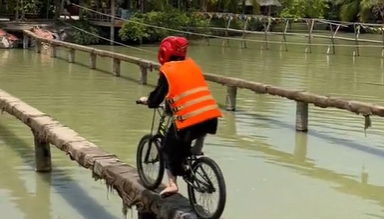 Đạp xe qua cầu khỉ là một trong những trò chơi mạo hiểm khá phổ biến tại Việt Nam, nhất là khu vực phía Nam.
