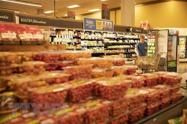 Hàng hóa được bày bán trong siêu thị ở Millbrae, Mỹ ngày 10/3/2022. (Ảnh: THX/TTXVN)