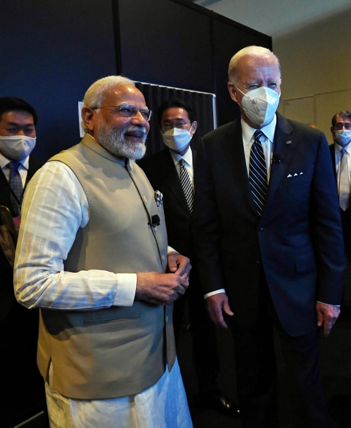 Thủ tướng Ấn Độ Narendra Modi và Tổng thống Mỹ Joe Biden tại Tokyo, ngày 23/5 (Nguồn: ANI)