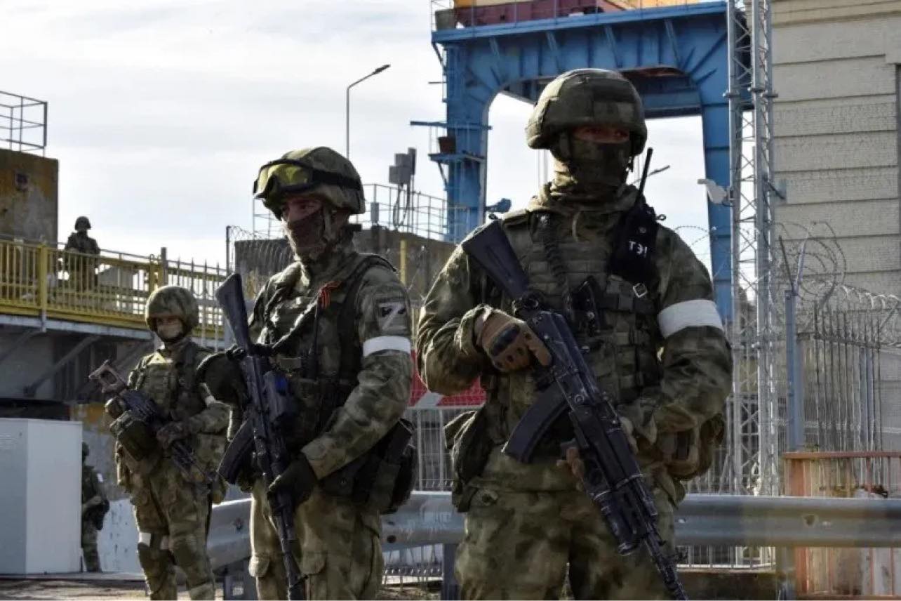 Quân nhân Nga tuần tra tại Nhà máy Thủy điện Kakhovka, Kherson. Ảnh AFP