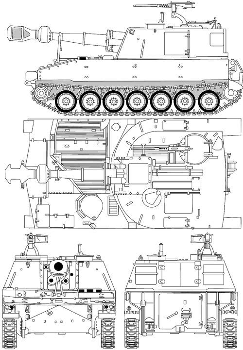 Bản vẽ bên ngoài pháo tự hành M109. Ảnh: The Blueprints