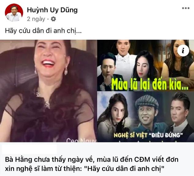Cụ thể, một fanpage Facebook có tên Huỳnh Uy Dũng thu hút 625.644 lượt theo dơi và 76.529 lượt thích thường xuyên chia sẻ những thông tin bất lợi về loạt nghệ sĩ như Hoài Linh, Đàm Vĩnh Hưng,… Thực chất, đây chỉ là một trang giả mạo, lợi dụng tên tuổi của ông Dũng Ḷ Vôi để thu hút người xem. Ngoài nội dung trên, trang này c̣n chuyên đăng những thông tin không chính thống về những nhân vật, sự kiện nóng trong xă hội.