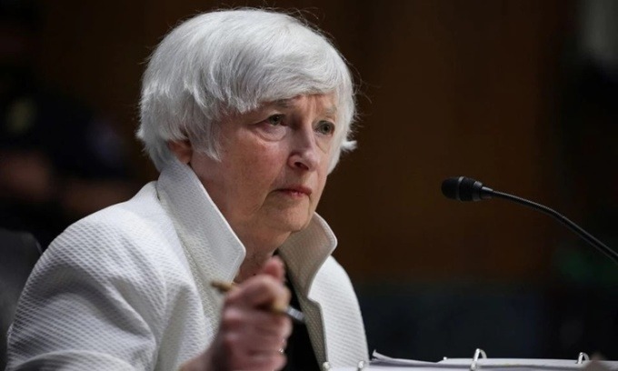 Bộ trưởng Tài chính Mỹ Janet Yellen tại phiên điều trần của Ủy ban Tài chính Thượng viện về ngân sách năm 2023 ở Washington ngày 7/6. Ảnh: Reuters.