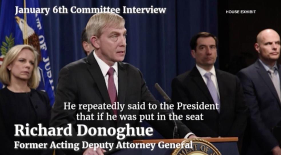 Chủ tịch ủy ban điều tra Bennie Thompson cho biết tại phiên điều trần hôm thứ Năm rằng “ông Trump muốn Bộ Tư pháp giúp hợp pháp hóa những lời nói dối của ông ta; vô căn cứ gọi cuộc bầu cử là gian lận; bổ nhiệm một cố vấn đặc biệt để điều tra cáo buộc gian lận bầu cử; gửi một lá thư tới sáu cơ quan lập pháp tiểu bang thúc giục họ xem xét việc thay đổi kết quả bầu cử.”