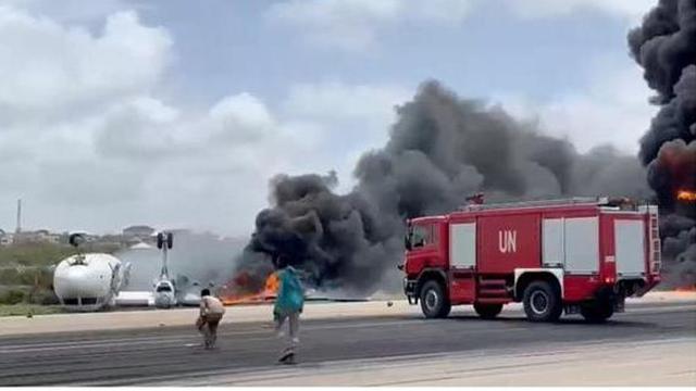 Theo như h́nh ảnh từ hiện trường về vụ tai nạn máy bay đă xảy ra khi hạ cánh xuống sân bay ở Somalia vào hôm thứ Hai cho thấy những cột khói đen bốc lên từ máy bay khi các nhân viên cứu hoả chiến đấu để dập tắt ngọn lửa nhưng rất may không có thiệt hại về người.