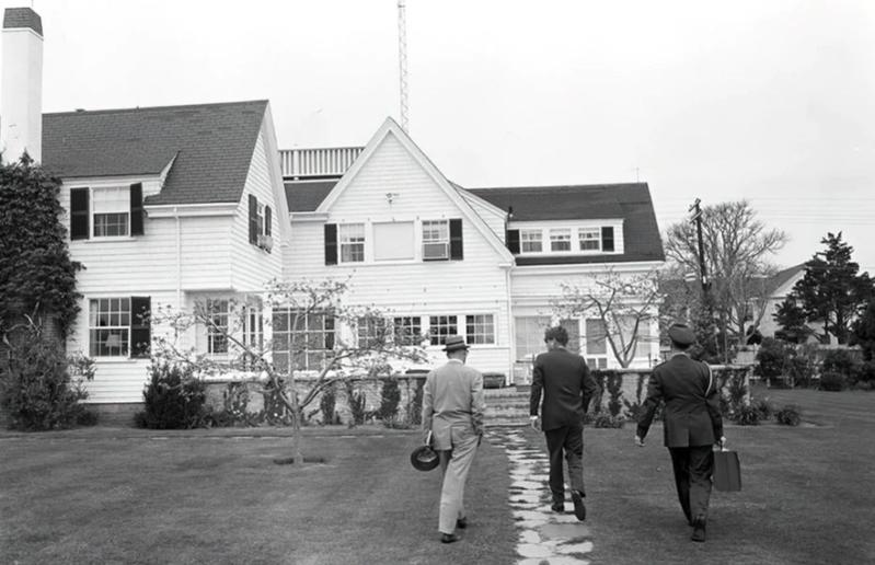 Tổng thống John F. Kennedy (giữa) và chiếc vali hạt nhân tại Massachusetts tháng 5/1963. Ảnh: Getty Images