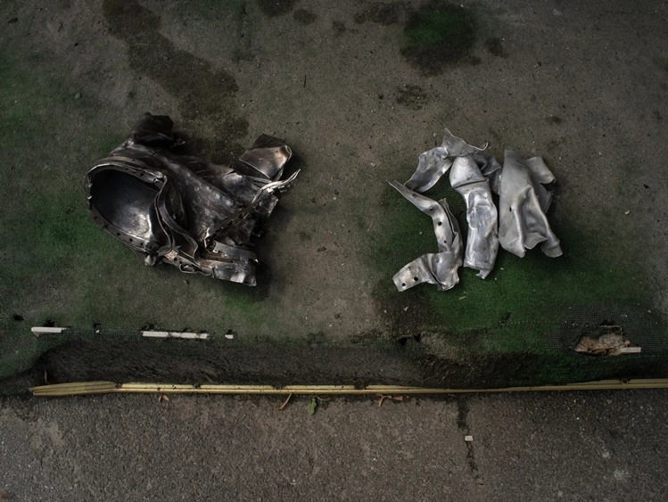 Bất ngờ, mắt anh sáng lên. Ngay trước mặt Sumliennyi, nằm gần vỉa hè, chính xác là thứ mà anh đang tìm kiếm: Một mảnh tên lửa hành trình, được cho là của Nga, đã lao vào tòa nhà.