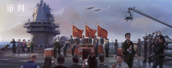 Cư dân mạng Trung Cộng vẽ tranh tưởng tượng về cảnh nhà lãnh đạo Đài Loan Thái Anh Văn đầu hàng trên tàu sân bay Trung Quốc, Đài Loan trở về Đại lục.