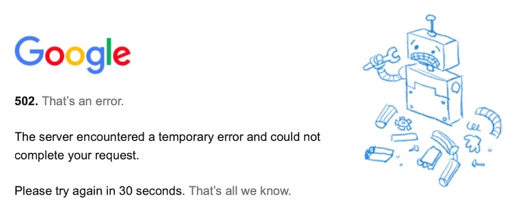 Thông báo Google Tìm kiếm bị lỗi "502".