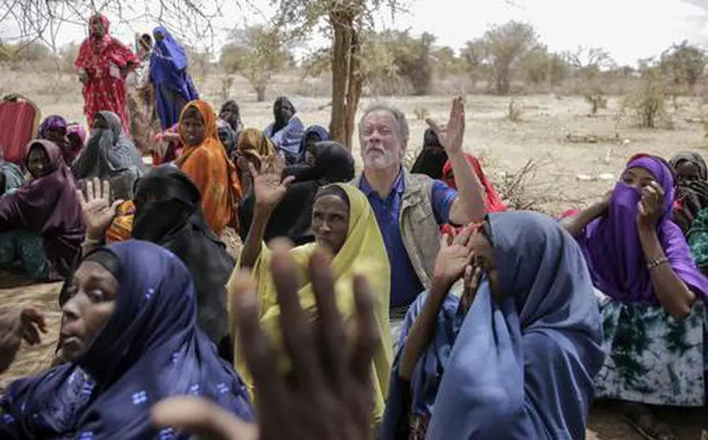 Giám đốc Chương trình Lương thực Thế giới – ông David Beasley (giữa) – nói chuyện với dân làng Wagalla ở miền Bắc Kenya. Ảnh: AP