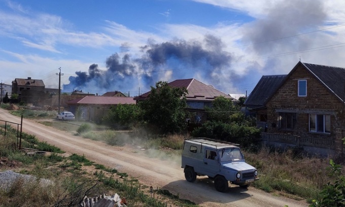 Theo một quan chức phương Tây, các vụ nổ trước đó tại căn cứ không quân Saki ở Crimea hồi đầu tháng đă khiến hơn một nửa số máy bay chiến đấu của Hạm đội Biển Đen bị phá hủy. Quan chức Ukraine nói rằng đặc nhiệm của họ và lực lượng du kích địa phương đă tiến hành vụ tấn công, trong khi Bộ Quốc pḥng Nga tuyên bố đây là sự cố do sơ suất.