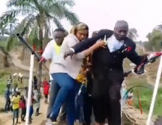 Một chiếc cầu nhỏ bị sập trong lễ khánh thành tại CHDC Congo thu hút sự chú ý của người dùng mạng xã hội. Trong đoạn video ghi lại vụ việc. Các quan chức địa phương đang tiến hành lễ khánh thành một cây cầu nhỏ để giúp người dân có thể di chuyển qua sông trong mùa mưa.