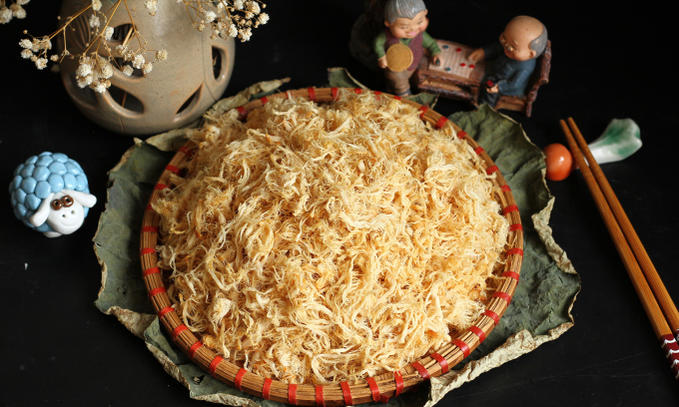 Chà bông sợi nhỏ, độ tơi vừa phải, màu vàng tự nhiên, ăn kèm xôi trắng, bánh mì, cháo rất ngon. Đây cũng là món dự trữ trong ngày mưa bão rất tiện lợi.