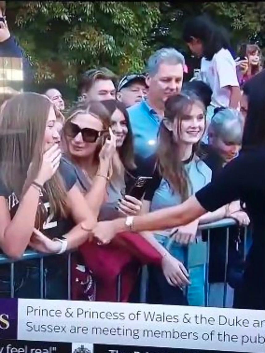 Clip lan truyền trên internet cho thấy Meghan Markle đi ngang qua 3 người phụ nữ đứng sau rào chắn. Khi nữ Công tước xứ Sussex đưa tay về phía họ, người đầu tiên chỉ đáp lại bằng nụ cười nhếch mép lạnh lùng. Tiếp đó, cô gái kế bên tỏ ra bận rộn bằng cách chỉnh lại kính râm. Người phụ nữ lớn tuổi còn lại thì cúi gằm mặt và từ chối nhận cử chỉ của vợ Hoàng tử Harry.