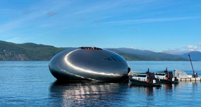 Người dân địa phương bối rối khi ột tòa nhà giống như UFO sáng bóng kỳ lạ bất ngờ xuất hiện trên hồ nước Na Uy. Một tòa nhà có ngoại hình giống UFO kỳ lạ trôi nổi trên hồ nước Na Uy. Cấu trúc kỳ lạ này được gọi là 'Mắt cá hồi', nằm ở Hardangerfjord, Na Uy, ngay bên ngoài Rosendal trước sự ngỡ ngàng của người dân địa phương.