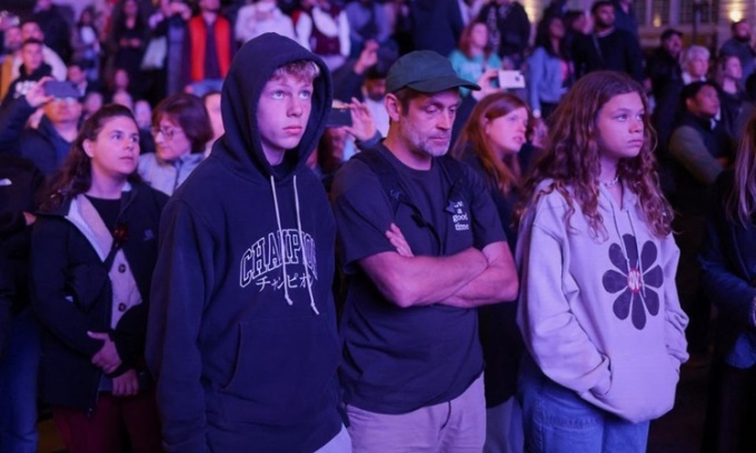 Người dân ở thủ đô London, Anh, dành một phút mặc niệm tưởng nhớ Nữ hoàng Elizabeth II tối 18/9. Ảnh: Reuters.